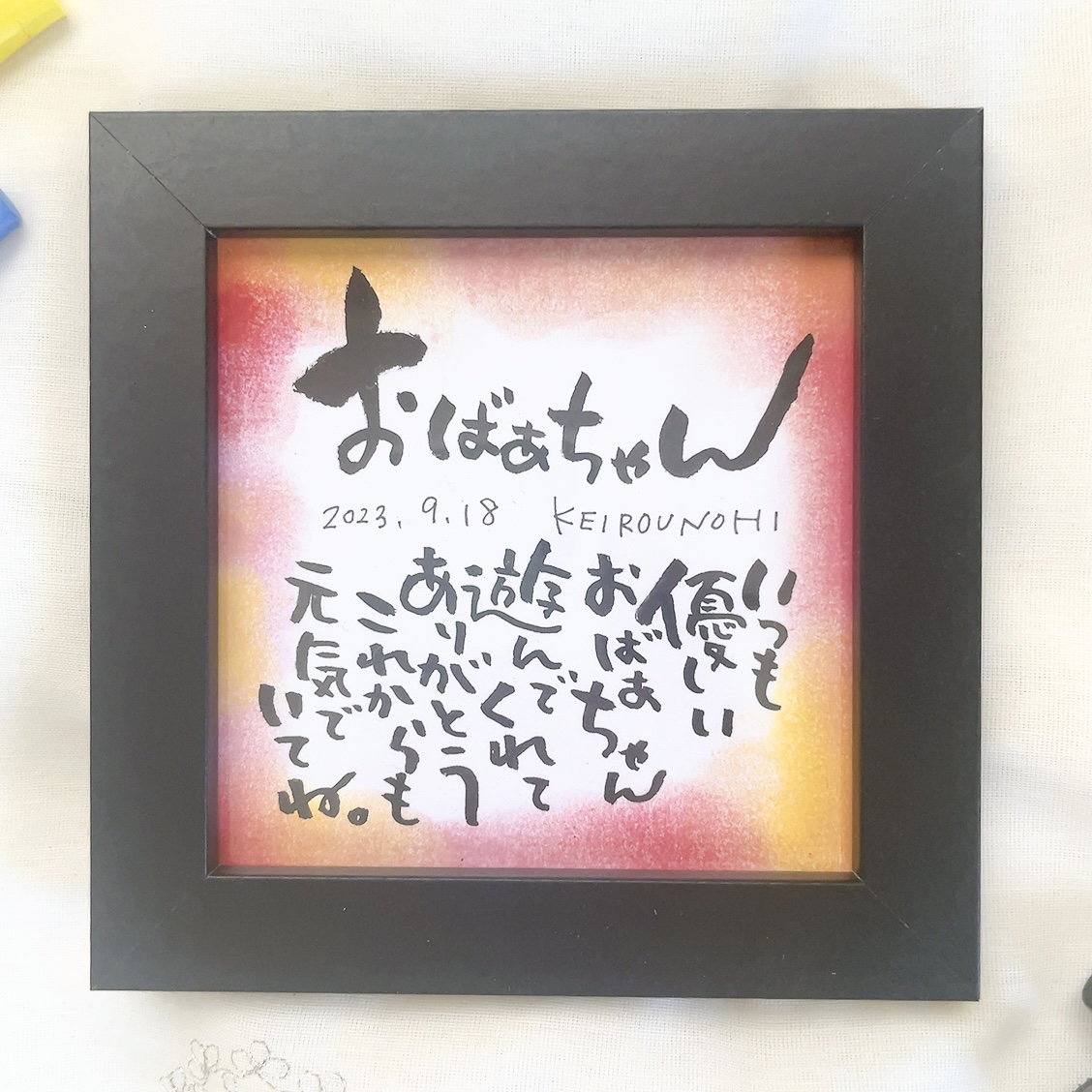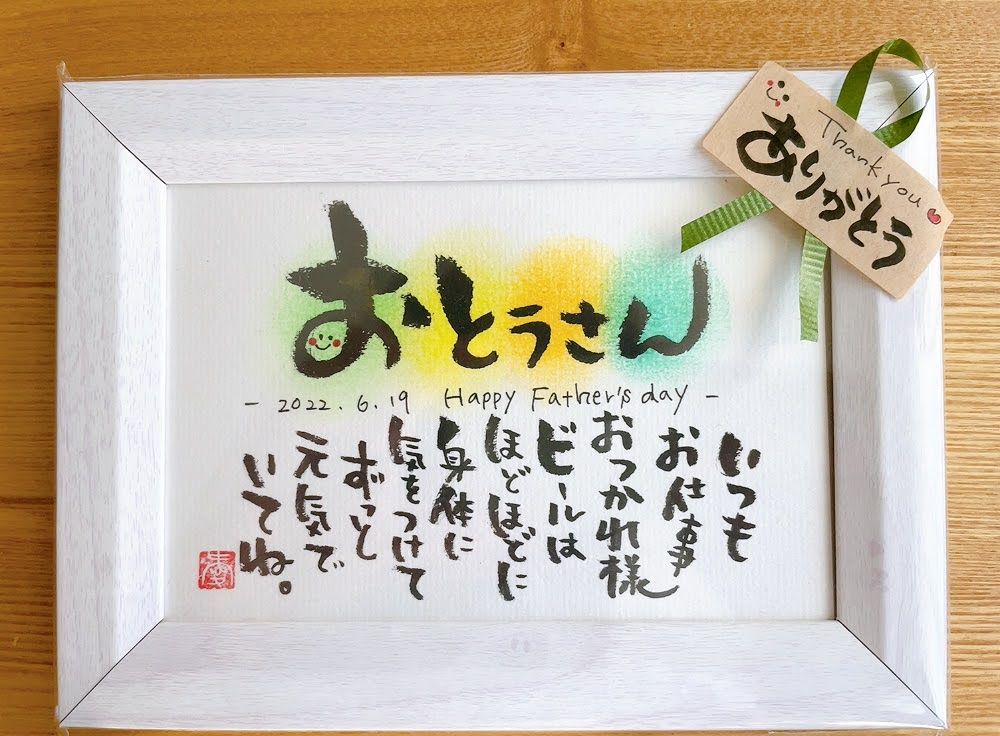 母の還暦祝いで贈ったとき、作品を見た父が「お父さんも欲しい」と言ったので、その年の父の誕生日にリピートさせて頂きました!とても優しい字で、家族みんな喜びました。(沖縄県・女性)